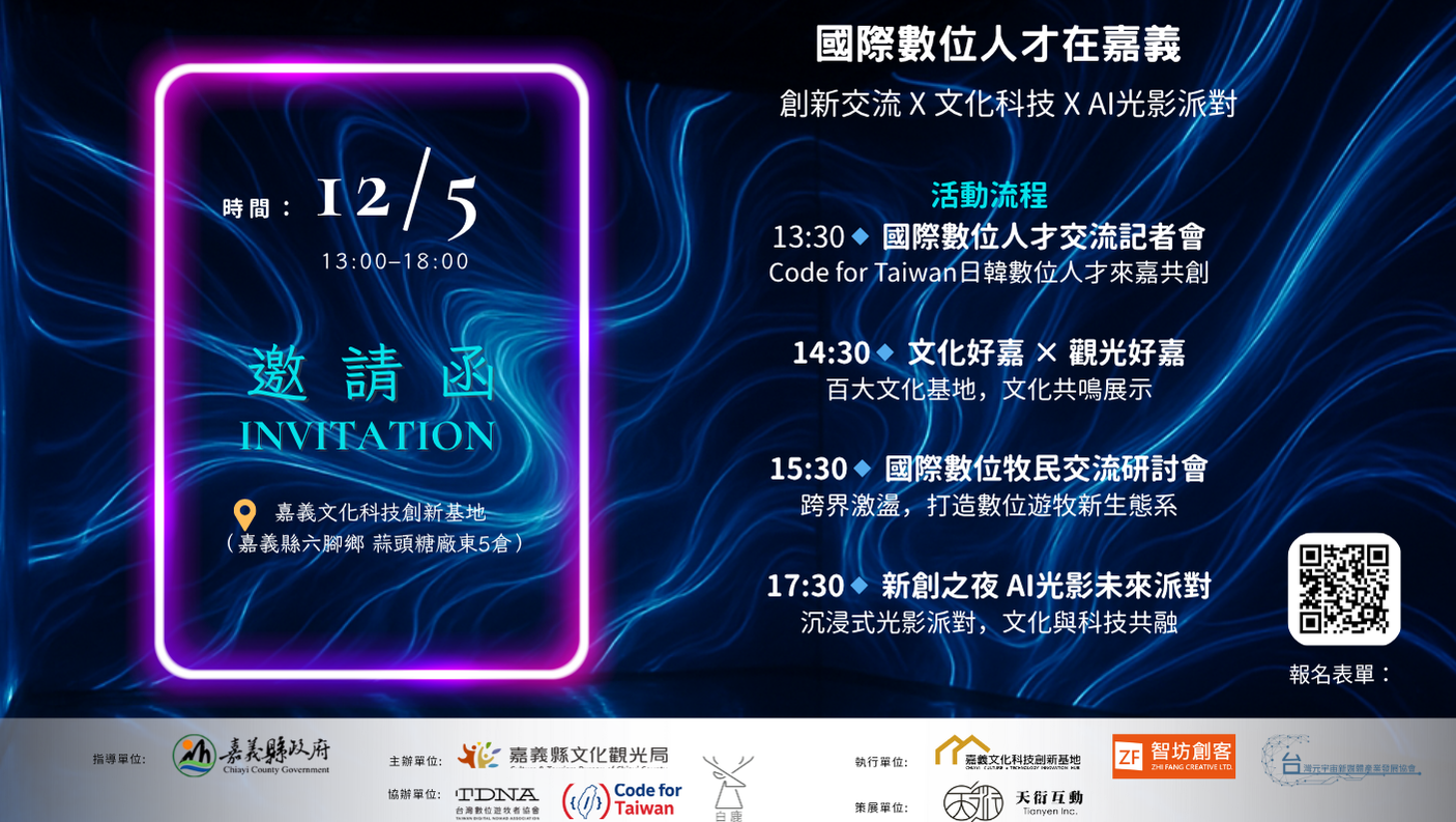12/5 - 7,來自台灣、日本、韓國、歐美 國際數位人才Code for Taiwan 參與者將齊聚嘉義。 這群來自世界各地的 數位遊牧者,不僅擁有國際視野與專業背景,更能將世界網絡與在地文化緊密串聯!